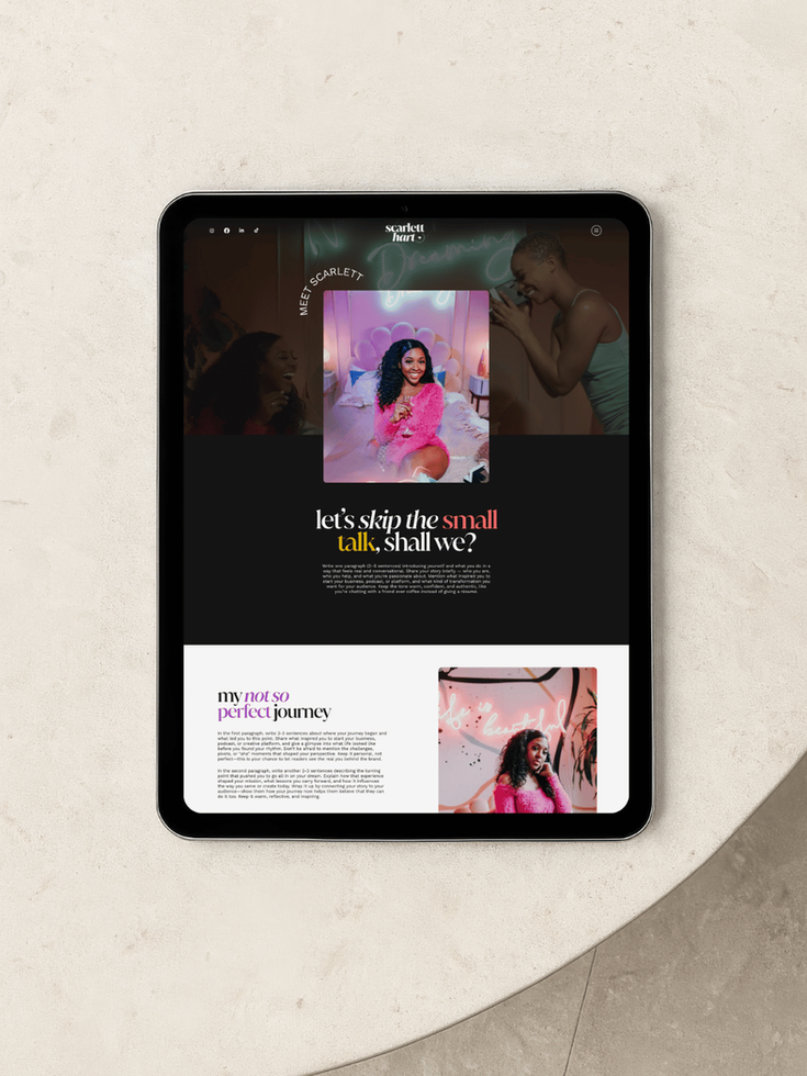 And because she’s that girl, Scarlett pairs perfectly with the Scarlett Canva Brand Kit, giving you a cohesive brand identity from logo to website. Together, they create a seamless visual story that commands attention and converts followers into paying clients. Whether you’re ready to book your dream clients, grow your podcast, or finally level up your digital presence, this Wix Studio website template is your all in one ticket to looking legit and making money online, fast.